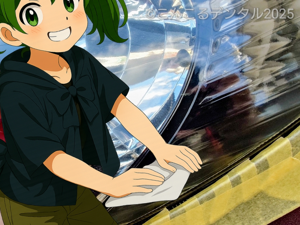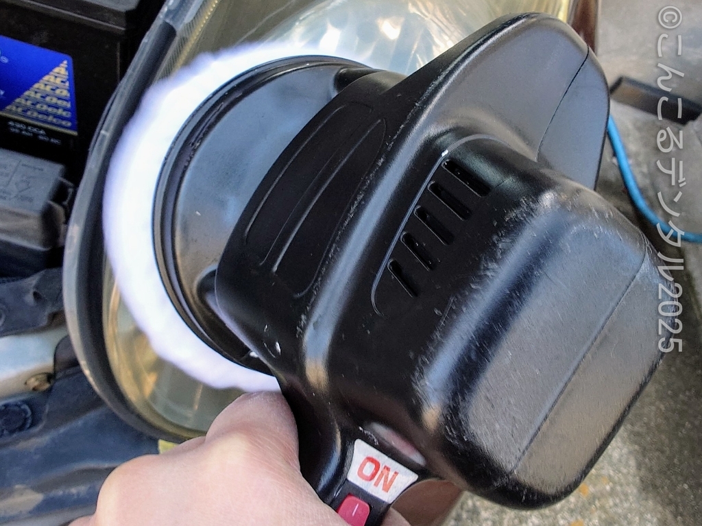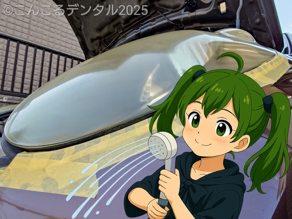 紳士の愛車のヘッドライトを磨いたのじゃ〜❗