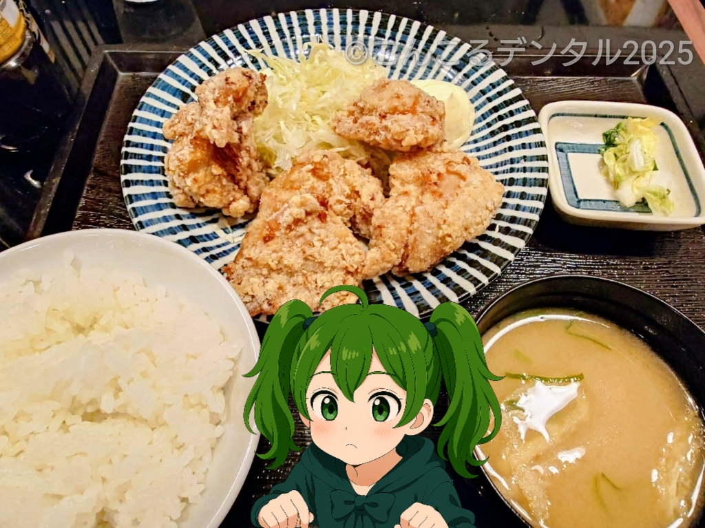 唐揚げ定食が 950円 でこのボリュームとは、まさに名前通りの“大金星”なのじゃ〜‼️