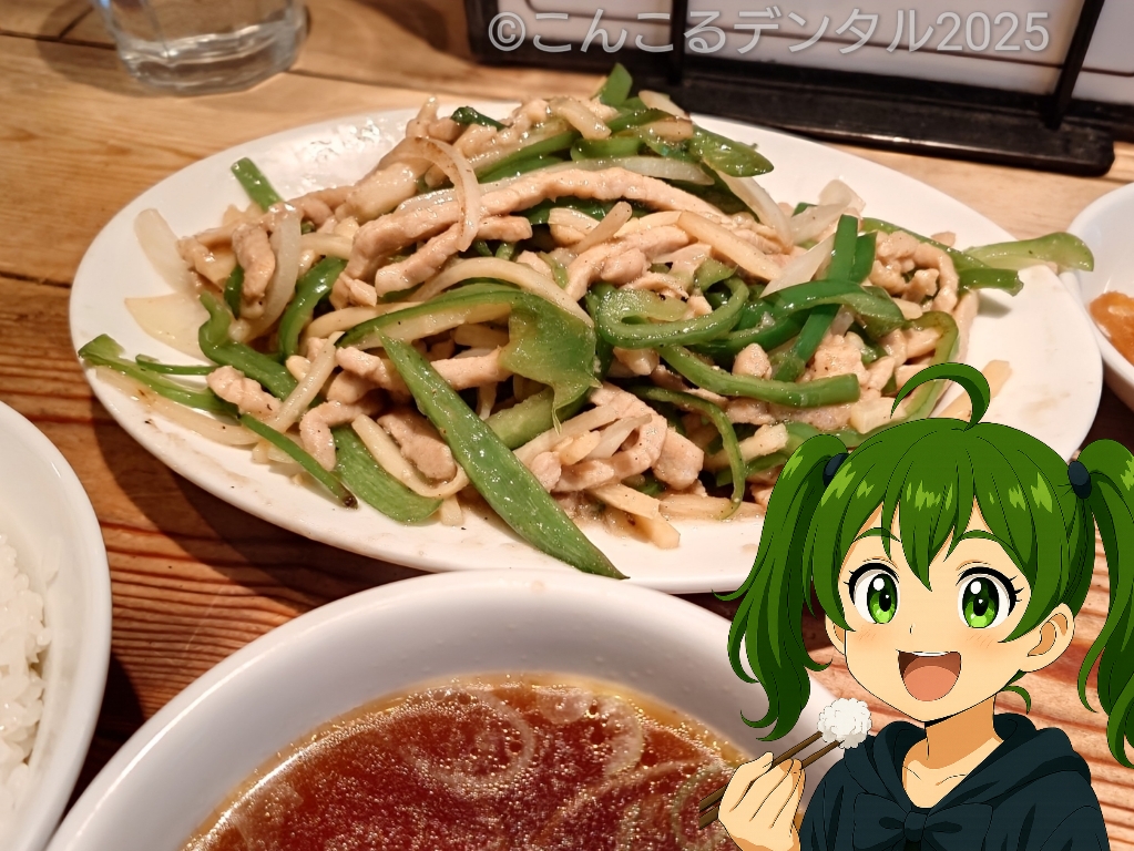 「ピーマン豚細切り炒め定食(1,000円)」をいただいたのじゃ〜🍚✨