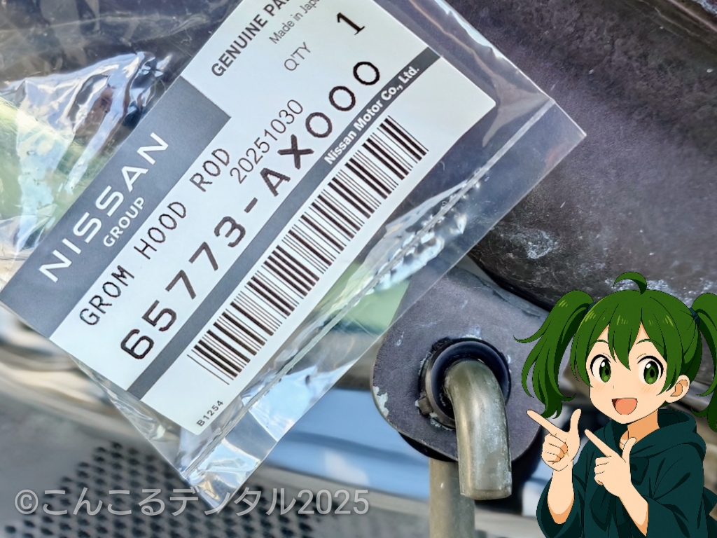 まずは、こちらが交換した 日産純正の「GROM HOOD ROD(65773-AX000)」なのじゃ📦💫
