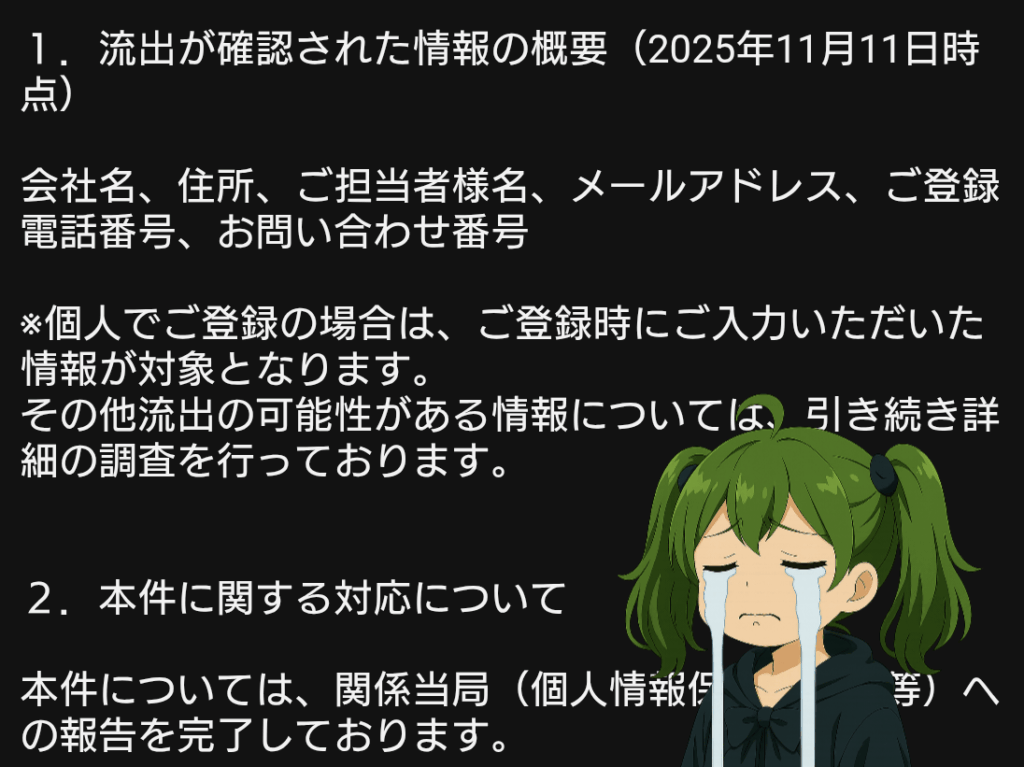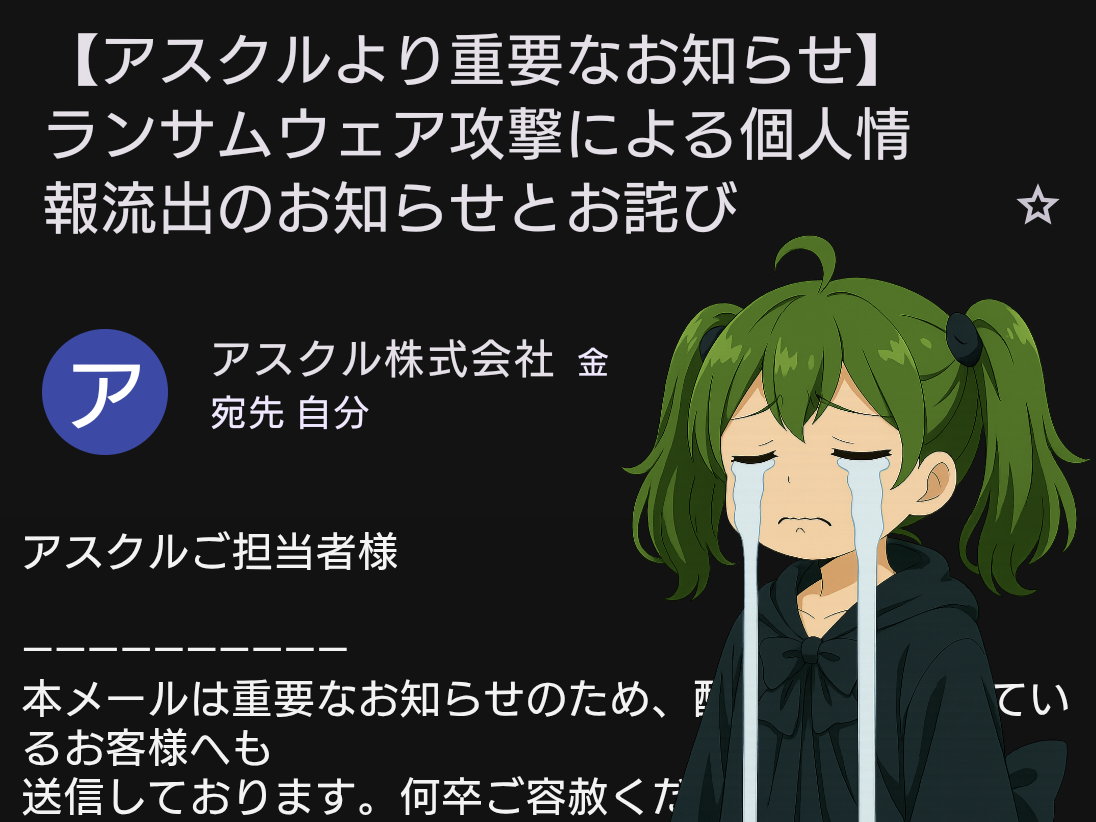 ぬぬっ……紳士に、アスクルさんから 個人情報流出のお知らせ が届いたのじゃな…。