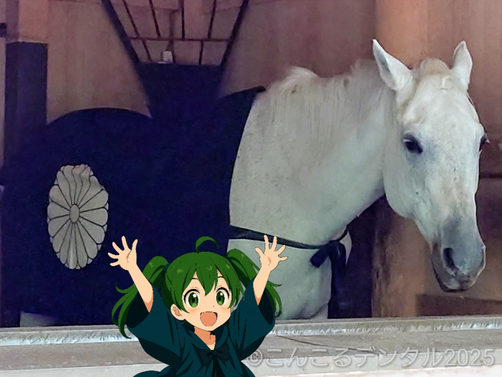 白くてやさしいお顔、着物のような馬衣の紋、凛とした立ち姿……