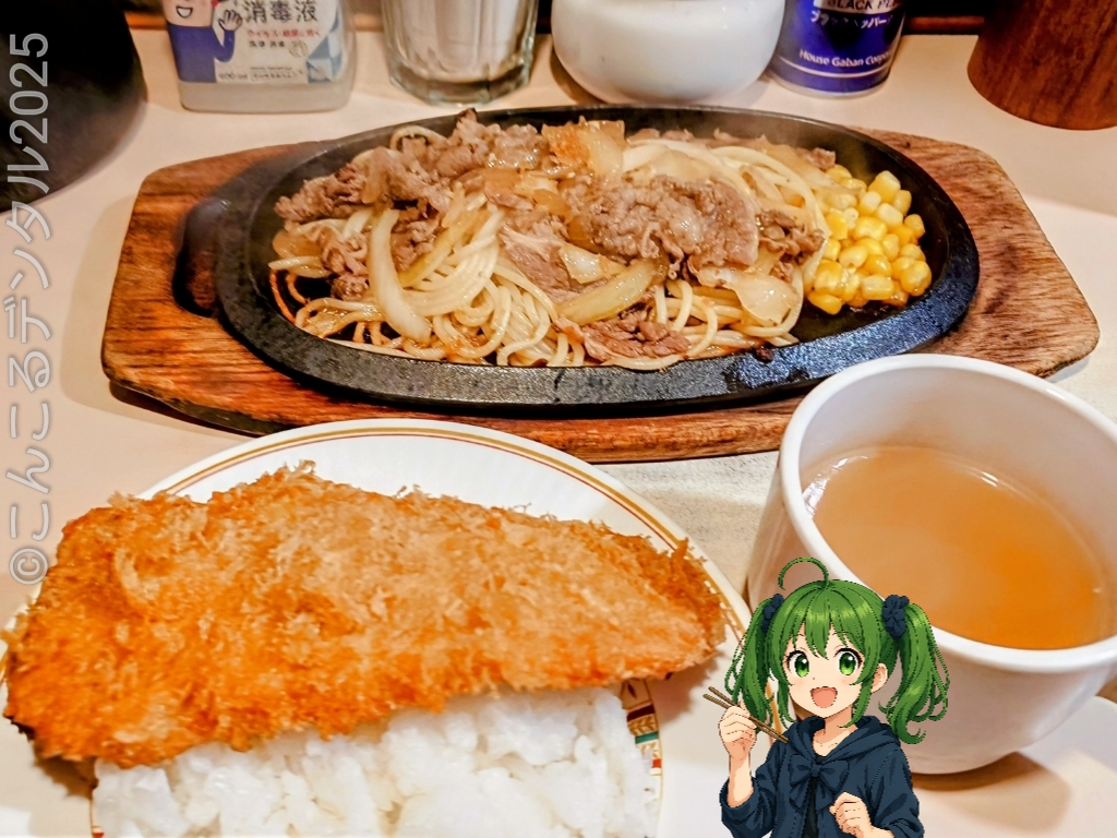 サックサクのカツ、牛肉と玉ねぎ、コーン…
