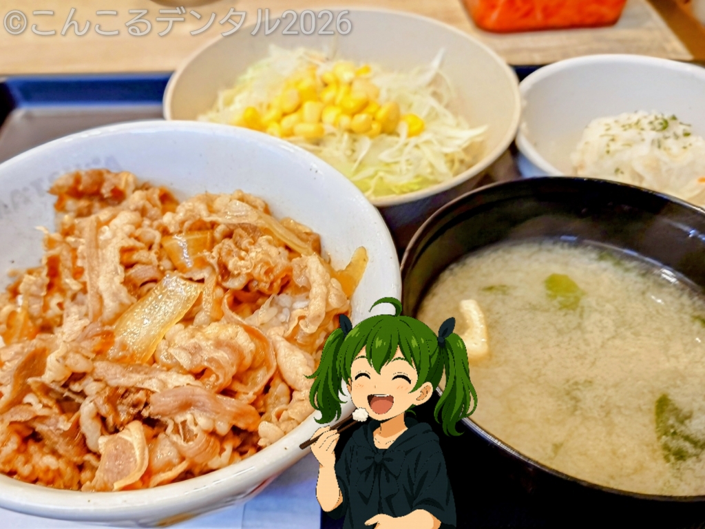 お肉の香りに、味噌汁のほわほわ、サラダのしゃきっと……土台がちゃんとしておるのう🍚✨