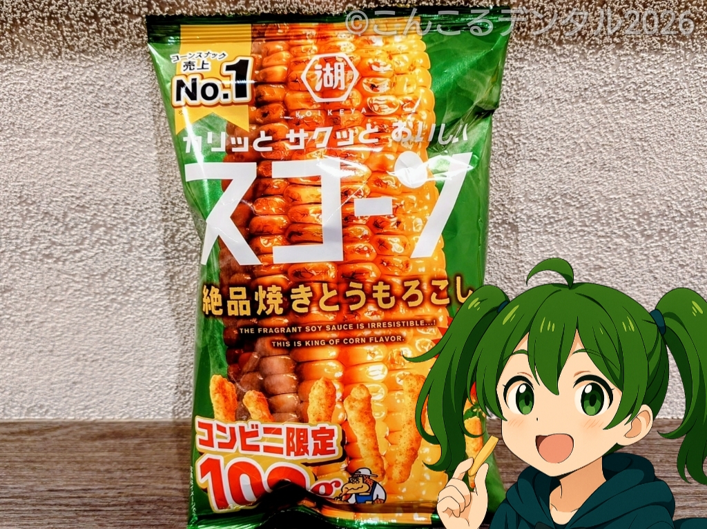 「スコーン 絶品焼きとうもろこし(コンビニ限定)」は、見た目からして主張が強いのう🌸