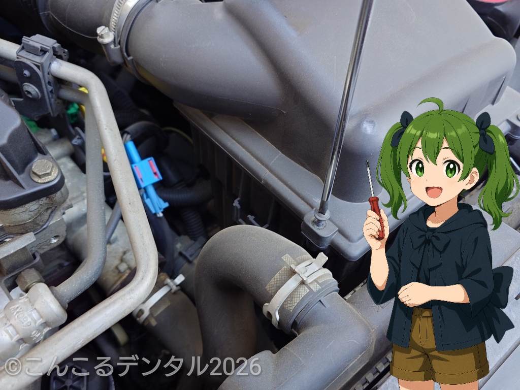 エンジンルームを開けて、
