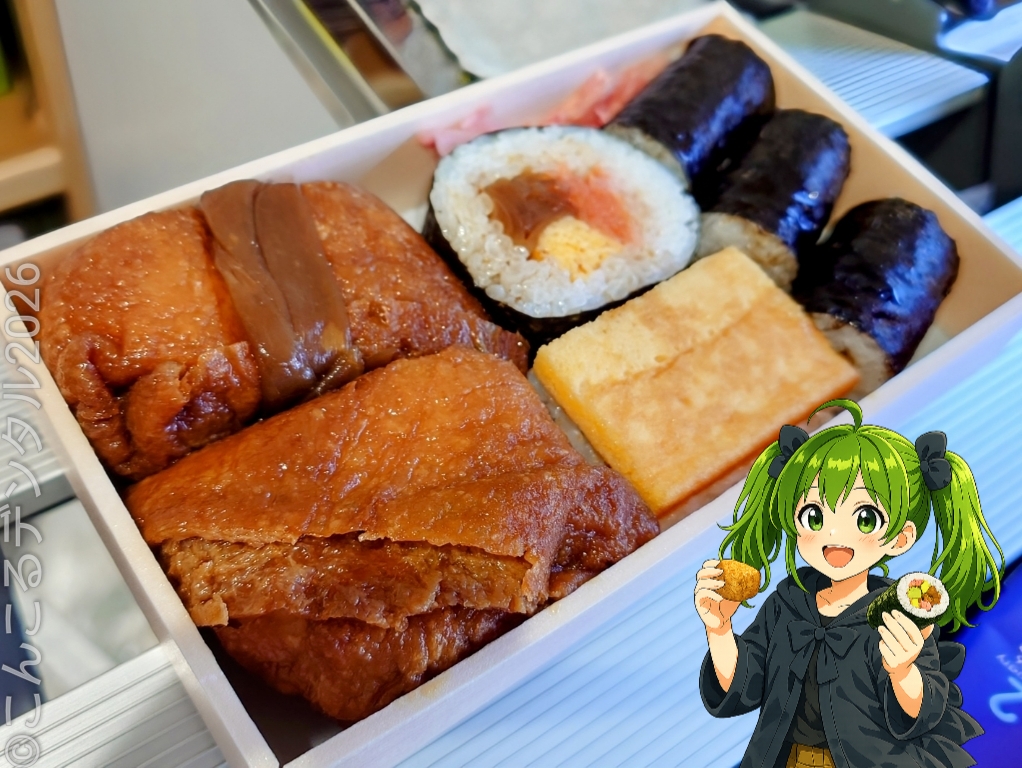 ふみきりすしさんの「盛合せ②」の助六寿司が支給されたのじゃ🍱✨