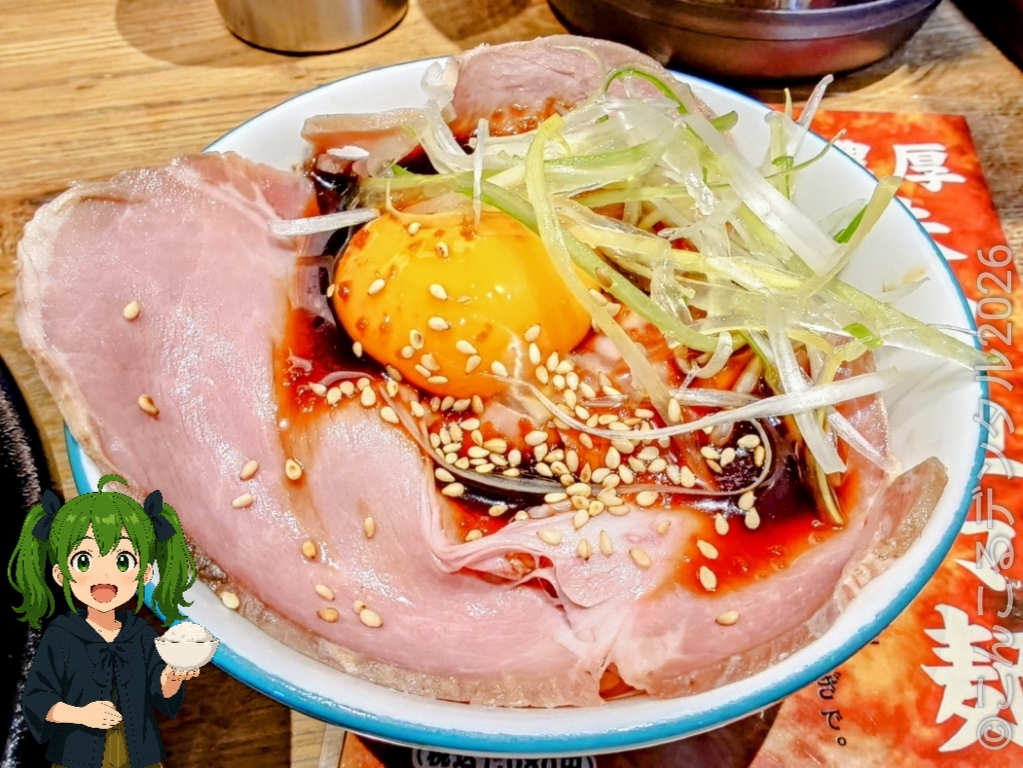 「とろ~り卵黄の大判レアチャーシュー丼(420円)」を付けてみたのじゃ🍚🥓