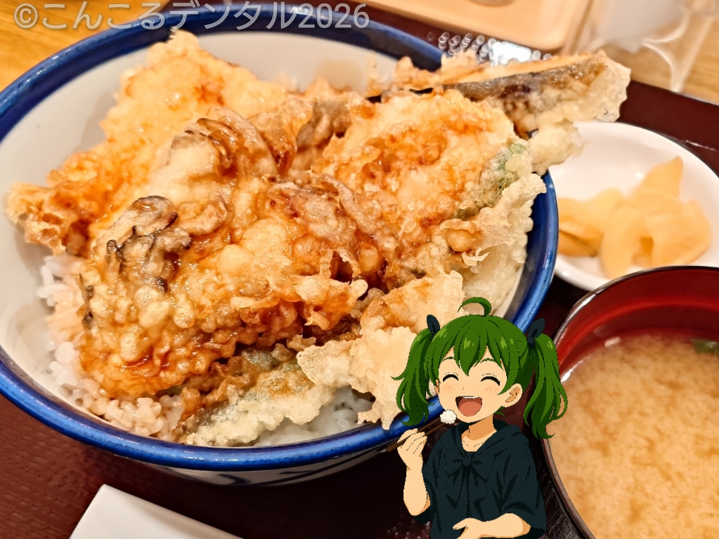 丼が運ばれてきた瞬間、「うむ、これは昼の現実解っぽいのう」と思ったし、ひるげで超ょ~久しぶりの天丼なのじゃ🌸