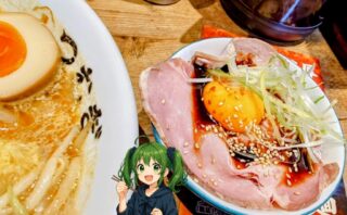 飲み食べ物 純米濃厚味噌ラーメン つむぎ とろ~り卵黄の大判レアチャーシュー丼
